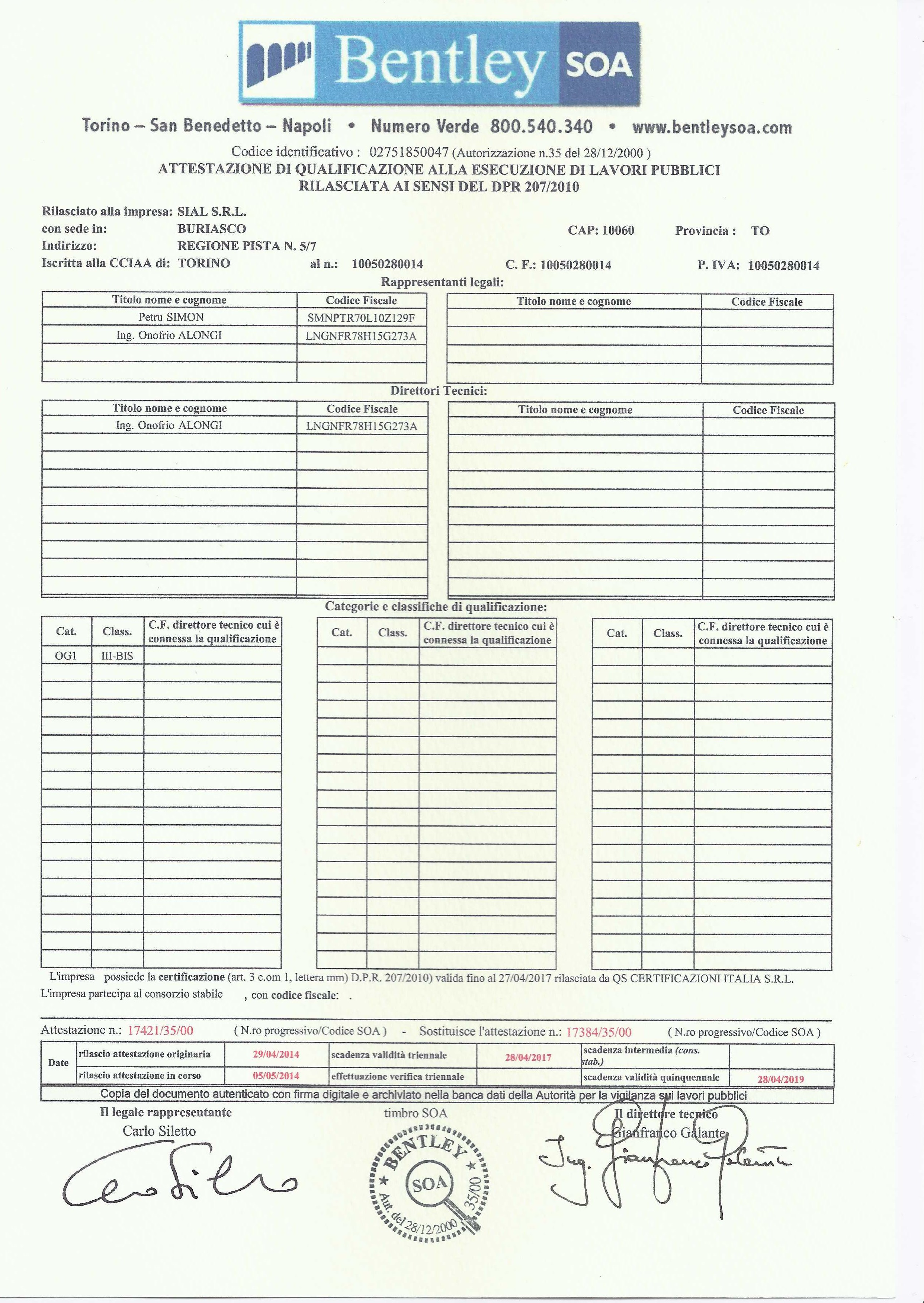 SIAL s.r.l. | Sede legale: Strada Reg Galli, 3 – 10045 Piossasco (To) | Tel. 011 2075709 | Fax 011 2072471 | e-mail: info@sialsrl.org | p.iva/C.F. 10050280014 | Codice REA: 1101424